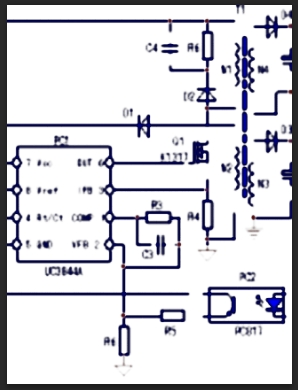 b、對UC3844單獨上電,短接PC2輸入側(cè),若電路起振,闡明缺點在PC2輸入側(cè)外圍電路;電路仍不起振,查PC2輸出側(cè)電路。